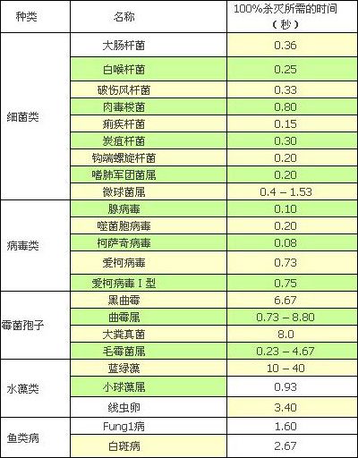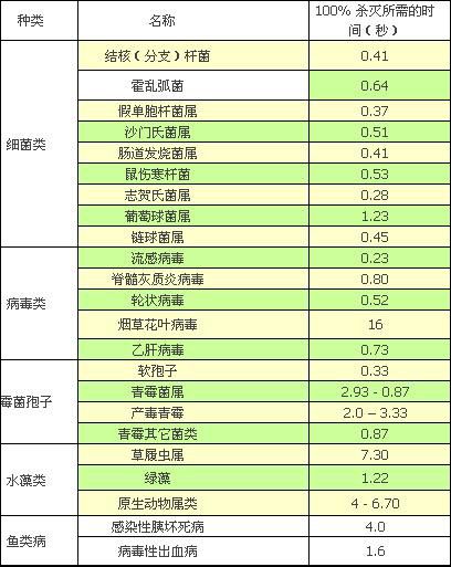 紫外線對(duì)殺滅各種細(xì)菌病毒殺滅所需時(shí)間